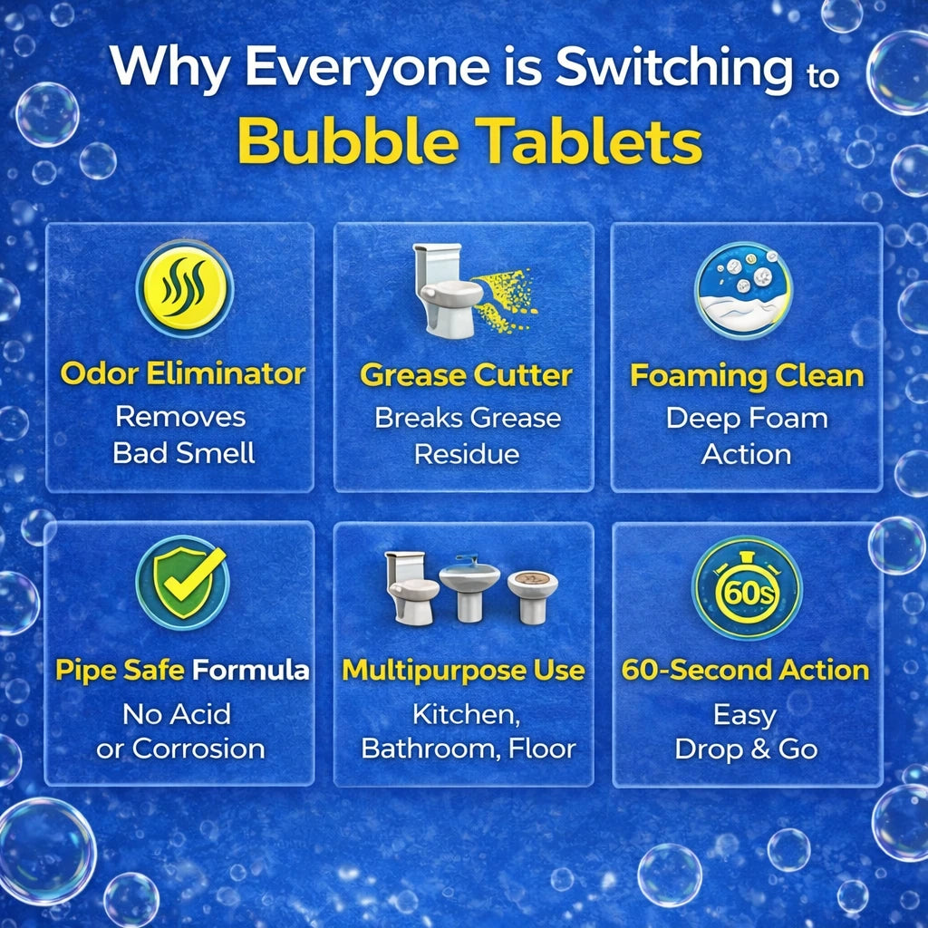 ✅ Yellow Bubble Tablets go deep into the pipe and create foam that breaks residue + neutralizes odor.